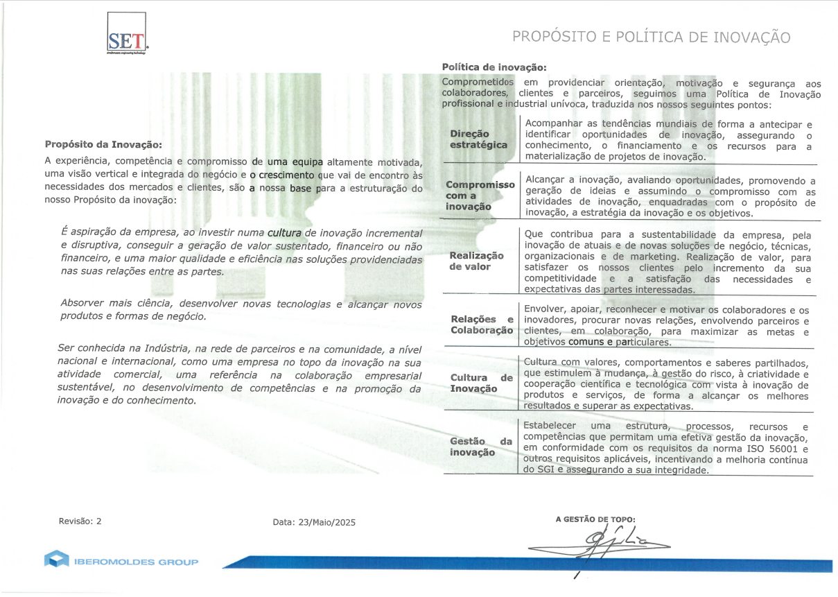 Quality Policy (in portuguese) Quality Policy (in english) Innovation Policy (in portuguese)