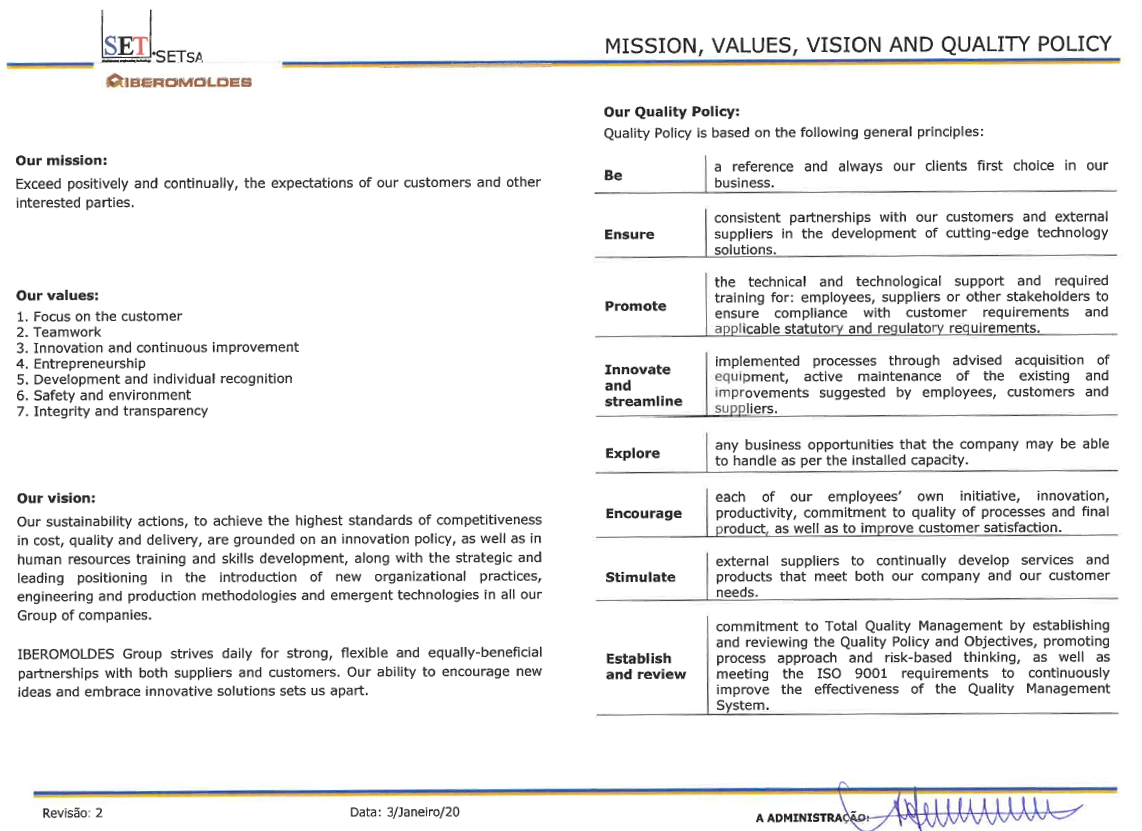 We understand quality and innovation in its broadest sense. As a philosophical driving force of the Company, oriented to the continuous satisfaction of needs and customers expectations.
