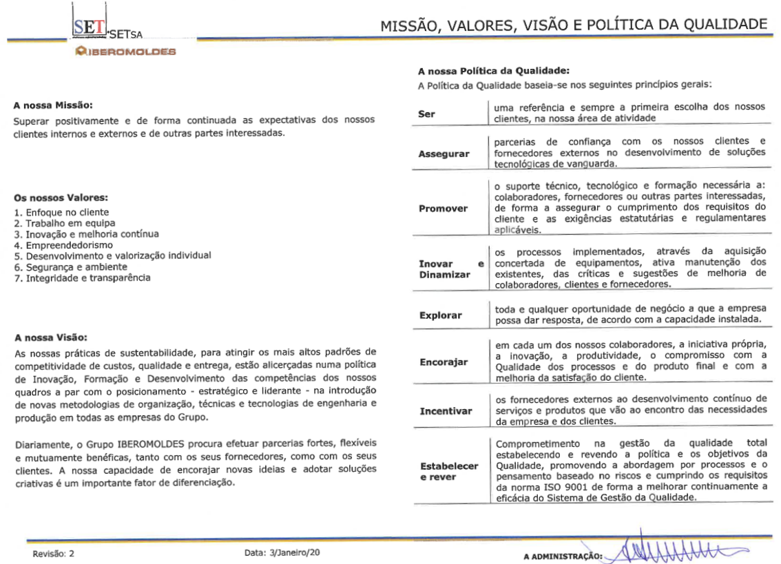 Quality Policy (in portuguese) Quality Policy (in english) Innovation Policy (in portuguese)